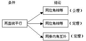 本节内容的难点是理解平行线的性质与判定的区别,并能在推理中正确地应用它们.由于学生还没学习过命题的概念和命题的组成,不知道判定和性质的本质区别和联系是什么,用的时候容易出错.在教学中,可让学生通过应用和讨论体会到,如果已知角的关系,推出两直线平行,就是平行线的判定;反之,如果由两直线平行,得出角的关系,就是平行线的性质.