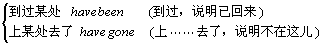 have / has been / gone to接地点名词,若接副词,如:away, home, out, 则不用to。例如: