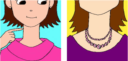 第65课是一段对话,通过妻子向丈夫述说有人偷了她的项链的事情。这一课的语法重点是由关系代词who, that引导的限定性定语从句。有讲解相关的知识时,可设计图文并貌的教学过程,帮助学生理解和掌握定语从句这一语法难点。