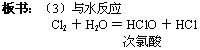 引入:上一节我们学习了氯气可以和金属、非金属单质反应。今天继续学习氯气和化合物的反应。氯气可以溶于水(1:2),能和水反应吗?