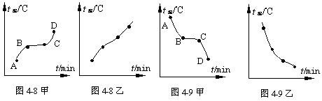 晶体和非晶体的凝固图像,可以照课本上那样讲,即告诉学生从实验得到课本图4-9所示的曲线。为了加深学生印象,可让学生讨论“想象议议”的问题,认清课本图4-9甲各线段表示温度怎样变化和物质处于什么状态。而后讲晶体、非晶体凝固的区别和凝固点。教师应明确,图4-9甲不是图4-8所示的海波熔化而又凝固示所得到的图像,而是个相当理想的晶体凝固图像。