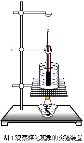 如果学校实验仪器较多,可在实验室组织学生进行探究“固体熔化时温度的变化规律”,事前将学生分成若干实验小组(2~3人为一组)。把仪器按教材50页图4-7观察熔化现象的实验装置组装好。