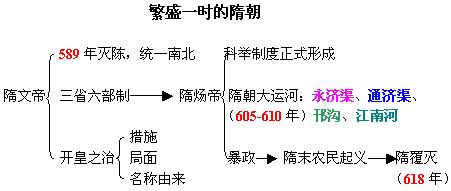 教师让学生自读教材,归纳、总结,然后提问。最后教师总结要点:隋完成统一,社会稳定;隋文帝在中央实行三省六部制、科举制;隋文帝节俭,提倡减轻人民负担。