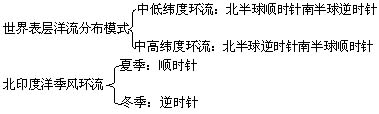6. 提问:北印度洋冬、夏季洋流的流向;形成该海域洋流流向随季节变化的原因是什么?