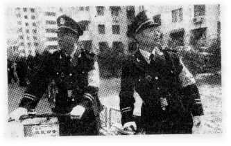 1989年9月22日,由50名下岗职工组成的北京德外社区保安服务队正式成立。这些保安人员是西城公安公局德外派出所为拓宽就业渠道,在辖区企业的300名下岗职工中选拔、招聘的。这是原北京钻探工具厂职工赵加勤(右)和原北京有色金属研究总院职工李丹国在小区巡视。