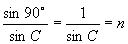 (2)临界角C.折射角等于90°时的入射角叫做临界角,用符号C表示.光从折射率为n的某种介质射到空气(或真空)时的临界角C就是折射角等于90°时的入射角,根据折射定律可得: