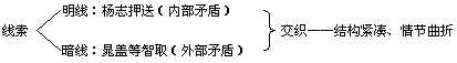 1.本文有两条线索,一条是明线:杨志等人“智送生辰纲”而丢失了生辰纲;另一条是暗线:吴用、晁盖等人“智取生辰纲”。两条线索交织展开故事情节,展示了统治阶级与农民的矛盾冲突。因此在欣赏课文时,应引导学生注意体会本文双线安排结构为表现主题服务,为人物性格塑造和发展服务的特点。鉴于上述考虑,我们拟定的教学目标第1点是:理清明暗两条线索,提高鉴赏古代小说(尤其是章回体)叙事方法的能力。