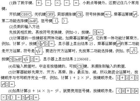 重点:用计算器进行数的加、减、乘、除、乘方和开方的计算;