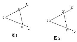 分析:假设∠A'O'B'已作出,且∠A'O'B'=∠AOB,如图2,在OA、OB、O'A'、O'B'上取点C、D、C'、D',使OC=OD=O'C'=O'D',那么△COD≌△C'O'D'.