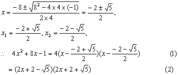 ,……所以我们可以利用一元二次方程的两个根来分解相应左边的二次三项式。