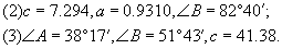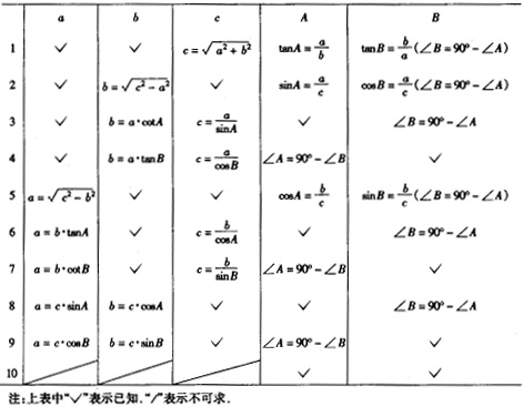 注意:例1中的b和例2中的c都可以利用勾股定理来计算,这时要查平方表和平方根表,这样做有时会比上面用含四位有效数字的数乘(或除)以另一含四位有效数字的数要方便一些。但先后要查两次表,并作一次加法(或减法)或者使用计算器求平方、平方根及三角正数值等。