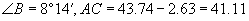 .已知观察所A的标高(当水位为0m时的高度)为43.74m,当时水位为+2.63m,求观察所A到船只B的水平距离BC(精确到1m)