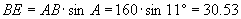 【例2】 如图所示,已知A、B两点间的距离是160米,从A点看B点的仰角是11°,AC长为1.5米,求BD的高及水平距离CD.