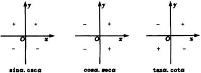 对于第一、四象限角是正的,而对于第二、三象限的角是负的.