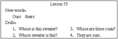 After the practice of the key sentences, the teacher change the sentence Whose is this shirt into Whose shirt is this. Tell the Ss Whose can be either followed with a noun or nothing, but the meanings are the same, that is to say it is used first as an adjective or then a noun.
