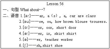 用同样的方法教学[C:][[:][[][F]并板书总结,也可用幻灯片代替板书。让学生看书跟录音读音标及单词。做Ex.1,教师领读,学生齐读,并找出2~3名学生朗读。