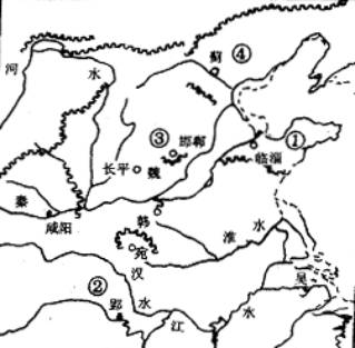 例题 1999年全国高考试题右图中,战国时期韩、赵、魏都城的相应标号依次是( )