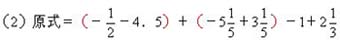 分析:(1)题是有理数加减混合运算,应先把减法转化为加法,然后作加法运算;