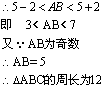 解:(1)根据三角形三边关系有