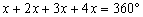 解:设这四个角的度数分别为x、2x、3x、4x,由四边形内角和360°,得: