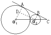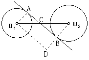 说明:(1)求内公切线长;(2)构造三角形、矩形,应用勾股定理、三角函数;(3)此题还可以通过△AO1C∽△BO2C,求出O1A、O2B,在求得.