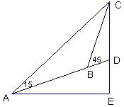 例1.如图所示,在斜度一定的山坡上的一点A测得山顶上一建筑物顶端C对于山坡的斜度为15°,向山顶前进100米后,又从B点测得斜度为45°,设建筑物的高为50米.求此山对于地平面的斜度的倾斜角