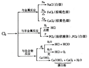 可以通过归纳整理,将氯气的化学性质的知识网络建立起来,如图: