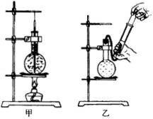 2.烧瓶中的水沸腾(图甲)后移去酒精灯,水停止沸腾。