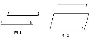 如果一条直线和一个平面没有公共点,那么就说这条直线和这个平面平行.图2中,直线l平行于平面α,记作:l∥α.