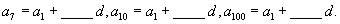 至此,大多数学生发现了d的系数=序号-1。至于有没有必要建立通项公式,学生没有自己的体会.可要求学生填空:![]()