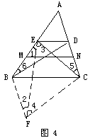 证明:如图4,假设AB>AC,则AM>AN.