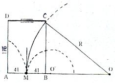 让我们回到那个马克尔广场的游戏上来.我们先计算一下,当人们闭起眼睛,从广场一端中央的M点,要想抵达教堂CD,最小的弧线半径应该是多少?