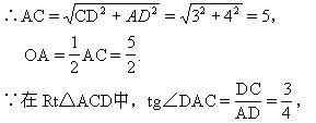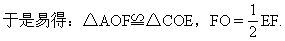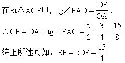 如能注意到利用已知可求得tg∠FAO,则在Rt△AFO中,根据tg∠FAO=FO/AO,FO即可求得,从而EF的长也易求得。(也可利用Rt△AOF∽Rt△ADC,得到:FO∶AO=CD∶AD,从中求出FO.)