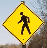 2.城市交通要道口,两旁设置红绿灯,地上划有人行道横线。行人穿过街道时,自己按下按钮,绿灯即亮,现出行人通行的标志,并发出柔和的笛声,此时来往车辆停下,行人通过。人刚走过,绿灯灭,红灯亮,自动现出行人禁止通行标志。