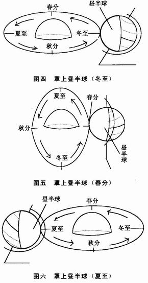 学生演示过程如图四~六所示。(秋分图与春分图相似,略)