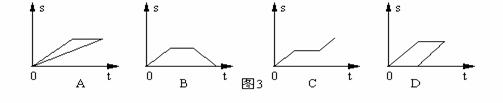例2:某同学以一定速度去同学家送一本书,停留一会儿后,又以相同的速率沿原路返回家,图3中哪个图线可以粗略地表示他的运动状态(B)