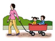 设问:如图,大人斜向上拉车的力产生哪些效果?