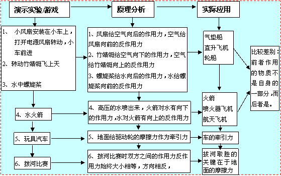 3.通过展示生活中一些有关牛顿第三定律应用的实例,解释其中原理,让学生体会物理知识对生产、生活的巨大影响,了解并体物理学对经济、社会发展的贡献;调动学生参与科技活动的热情,增强学生将物理知识应用于生活和生产实践的意识,促使学生勇于探究与日常生活有关的物理学问题。