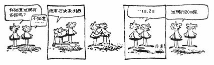 4.根据漫画讨论如图2-4-4所示:他们采用了什么方法测量洞的深度?请你对该方法进行评估(指出有何优点与不足)。
