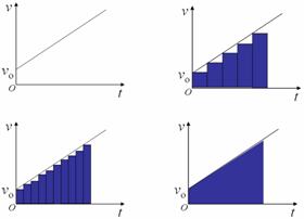 类比于匀加速直线运动的位移计算方法,在位移公式推导出来之前我们是通过怎样的方法计算位移的方法?学生回答(如图所示)