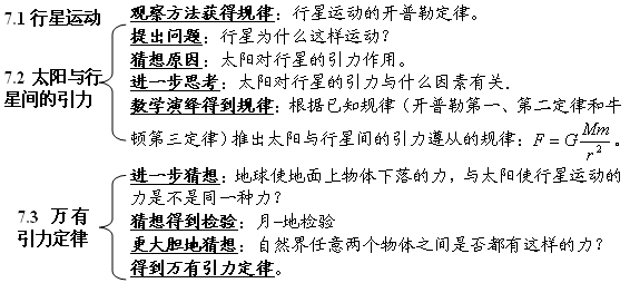 1、在万有引力定律建立过程的学习中,学习发现问题、提出问题、猜想假设与推理论证等方法。