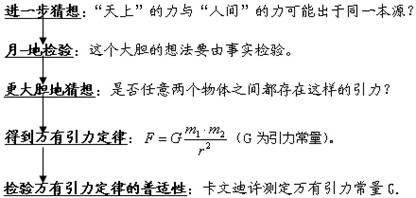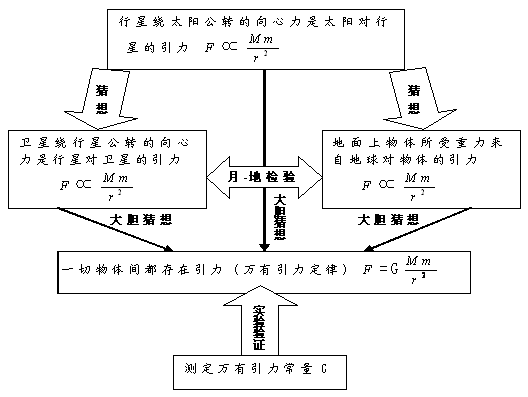 发现万有引力定律的思维过程:假想──理论推导──实验检验