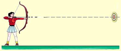 思考:射击运动员正对了靶心,在箭离弦的同时靶开始下落,问箭能否射中靶心?