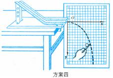 方案三:让水平喷出的细水流来显示平抛的运动轨迹,在水流后面竖直放置一块玻璃板,用彩笔描出水流的轨迹。