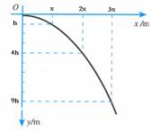 在平抛运动的轨迹上,取纵坐标为h,4h,9h的点,由于竖直方向是自由落体运动,则从抛出点到这几点所用的时间应分别为t,2t,3t;如果水平方向是匀速运动,则则从抛出点到这几点的水平位移应分别是x,2x,3x。如下图所示。数码相机拍照的则直接根据频闪间隔相等确定时间。
