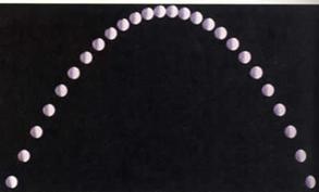 分析图中斜抛物体的频闪照片,你也能得出“斜抛物体的动能和势能互相转化,但在任一位置的机械能都相同”的结论吗?(留给学生课后探究)