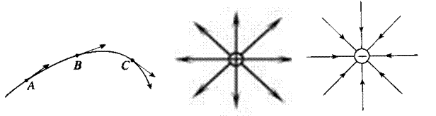 (我们知道,离电荷越近的地方,场强越大。从图中可以看出,离点电荷越近的地方电场线越密,在同一个电场线分布图上,电场线的疏密还可以大致表示场强的大小:电场线越密的地方场强越大,电场线越稀的地方,场强越小)