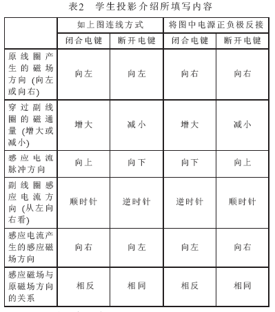 (学生交流实验探究结果)学生投影介绍所填写内容(表2)。
