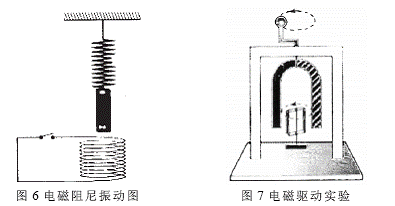 教学用具:计算机、DIS数据采集系统、数据采集器、微电流传感器、数据线、条形磁铁、干电池、双环实验、电磁阻尼振动实验。