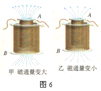 实验三:如图6所示,由于开关闭合、断开及迅速移动滑动变阻器的滑片,线圈A中的电流迅速变化,产生的磁场也在迅速变化,又由于两个线圈套在一起,所以通过线圈B的磁场强弱也在迅速变化,从而产生感应电流。